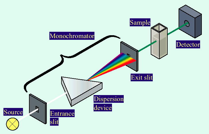 The transmitted wavelengths are employed in quantifying the concentrations of various analytes present in the sample. The spectrometer displays a spectrum of absorbed/transmitted light showing intensity versus wavelength and identifies the different analytes in the sample.